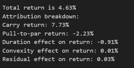 It is common for fixed income holders to want to understand what contributes to their fixed income securities return. Hence, this project develops a framework to break down the return from the fixed income securities. Specifically, it is broken down as follows:
